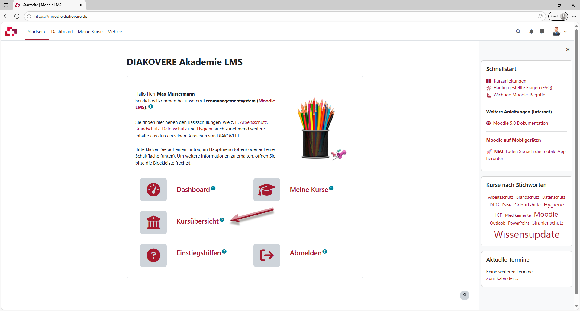 In die Basisschulungen werden Sie automatisiert eingeschrieben, Sie müssen dazu nichts weiter unternehmen. Sie finden alle Kurse, in denen Sie eingeschrieben sind, unter Meine Kurse.